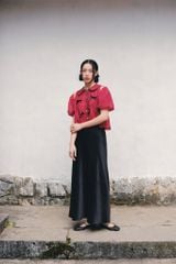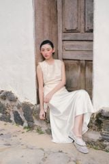 Chân váy lụa Cream Satin Dot Flared Skirt