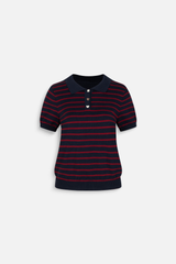 Áo Striped Knit Polo Sweetheart Buttoned Top nhiều màu