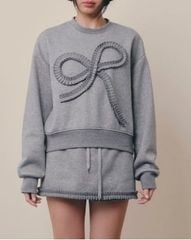 Gray Bow Long Sleeves Knit Set