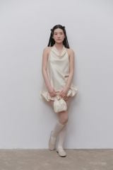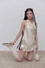 Áo cổ đổ Brown Satin Halter Cowl Top