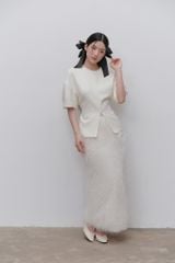 Set áo và chân váy ren Ivory Lace Long Sleeves Set