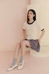 Áo Cream Knit Trim Top