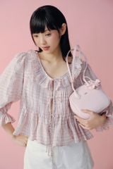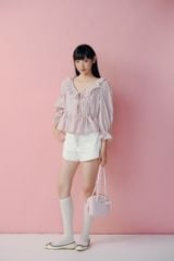Áo babydoll phối nơ Striped Puff Sleeve Shirt nhiều màu
