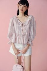Áo babydoll Pink Cotton Ruffled Tie Front Shirt