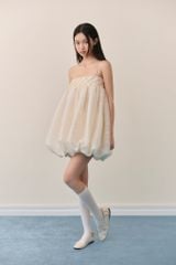 Set bí hai dây Ivory Mesh Smocked Puff Set