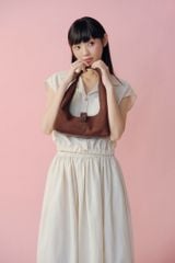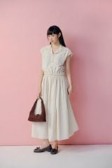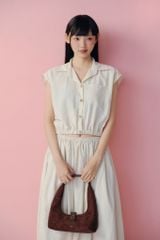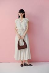 Set áo sơ mi và chân váy Cream Collared Pleated Set