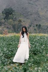 Váy maxi 2 dây White Cotton Strappy Gathered Maxi Dress