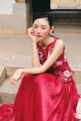 Áo cổ thuyền chiếc eo Red Embroidered Tie Top