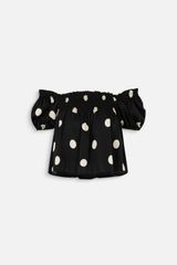 - Họa tiết: Chấm bi (Lưu ý giặt và xả nhanh, không ngâm, không dùng các loại chất tẩy mạnh để tránh lem màu)