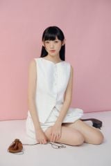 Áo kiểu White Sleeveless Buttoned Flare Top
