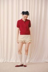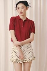 Áo Red Polo Knit Ribbed Top
