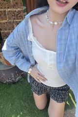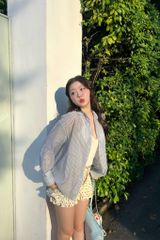 Áo sơ mi ren họa tiết hoa White Fleur Sheer Lace Shirt