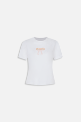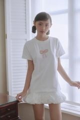 Áo White Pink Bow Cotton Short Sleeve T Shirt