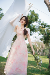- Chất liệu: Kem + Hồng chất Voan hoa, Light cream chất Cotton ren hoa