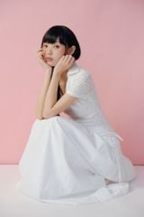 Chân váy lụa đuôi cá Cream Satin Dot Flared Skirt