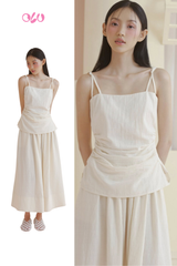 Cream Linen Strappy Ruched Dress