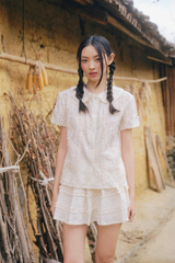 Set áo và chân váy váy kem Cream Lace Chiffon Fleur Collar Set