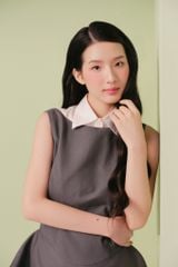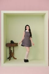 Váy dáng ngắn chiết eo cổ sơ mi Charcoal Layered Collar Sleeveless Mini Dress