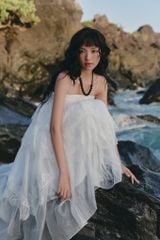 Váy tiệc dáng tầng cổ yếm White Chiffon Layered Ruffled Halter Mini Dress