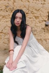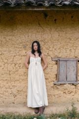 Váy maxi 2 dây White Cotton Strappy Gathered Maxi Dress