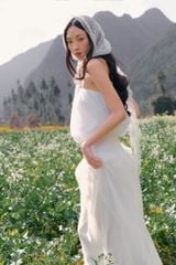 Váy maxi 2 dây White Cotton Strappy Gathered Maxi Dress