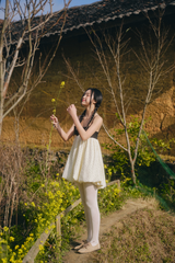 Váy nơ kem Cream Dot Bowey Mini Dress
