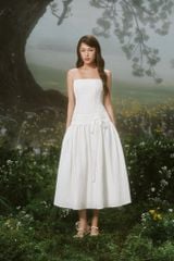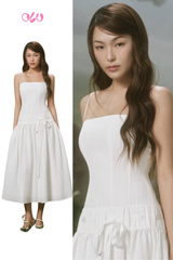 White Square Tie Waist Midi Dress